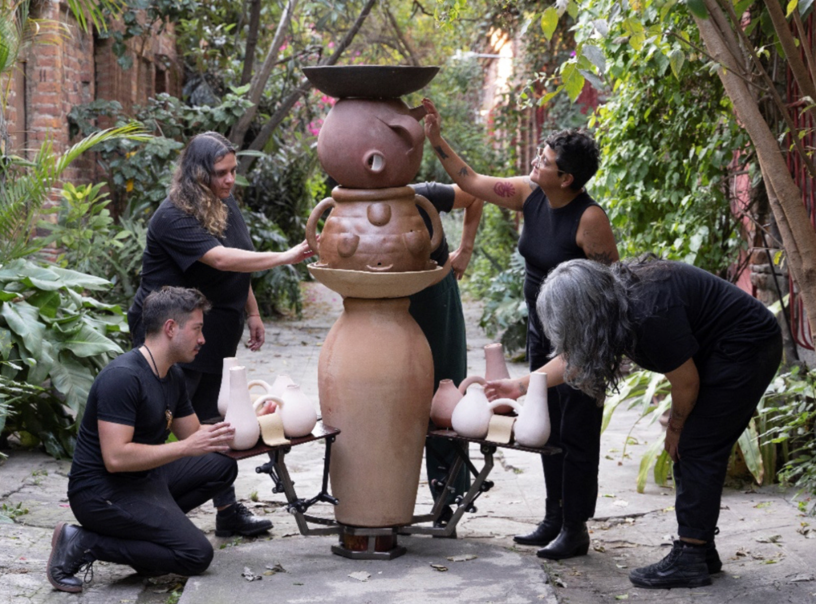 Al encontrarse con una escultura como ésta, el cuerpo propio es un referente sensato. Recorrerla, acercarse, escucharla de lejos, verla de espaldas, susurrarle un secreto o activar uno de los cinco cántaros colocados en la base son solo algunas de las acciones que podemos hacer como espectadores-participantes. La primera vez que la montamos alguien constató “es rara” pero es su extrañeza la que captura nuestra atención y no la