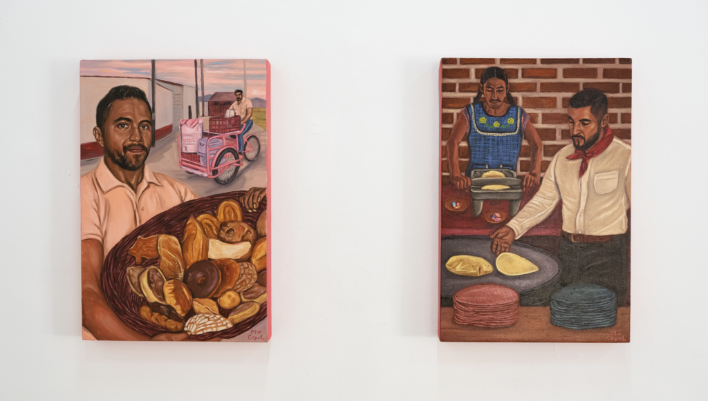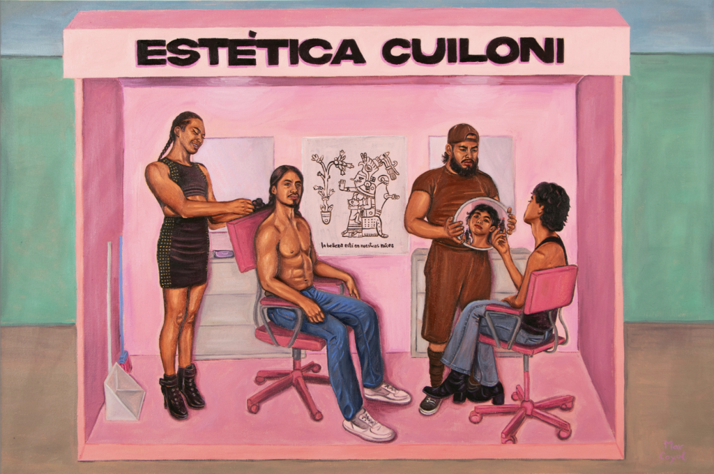 Al ingresar al tlaxcalchihuayolan, el lugar donde se hacen las tortillas, Mar Coyol no intenta regalarnos una mera escena cotidiana. En su lugar, realiza un acto de subversión a la práctica visual de los álbumes costumbristas y las galerías de tipos del siglo XIX, que pretendían documentar y clasificar a los habitantes y sus oficios. A la artista le interesa poner en relevancia los ciclos de creación y retribución antiguos, así como el valor del trabajo humano, especialmente la dignidad y resiliencia de personas de la comunidad LGBTTTIQ+, que se enfrentan a los estereotipados y excluyentes roles asignados.