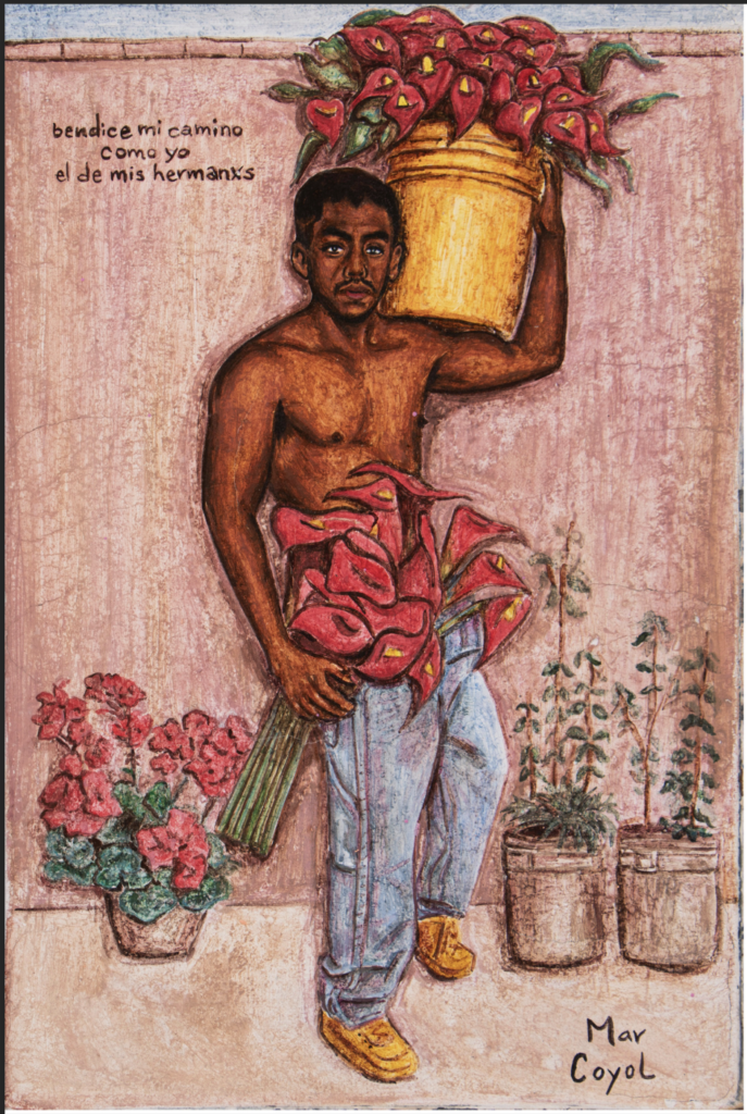 En un diálogo abierto y crítico con lxs artistas que reivindicaron la conexión de las culturas pasadas con la época actual, Coyol cuestiona los patrones con que se han configurado las visiones hegemónicas de la identidad laboral mexicana. Cuando enuncia que la “belleza está en nuestras raíces”, de un modo semejante al Códice Florentino, procura dar voz y memoria a aquellos que históricamente han sido relegados a los márgenes por alejarse de las normativas heterosexuales, tal es el caso de lxs cuiloni.