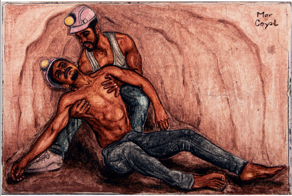 El conjunto de parejas, en particular lxs minerxs, nos permiten comprender que al agrupar su serie bajo el término Macehual, Coyol no sólo exalta la raíz popular y la herencia anawaka de sus protagonistas, sino también su pertenencia a la maltratada base trabajadora; son portavoces de una opresión interseccional, corazones entristecidos por una vida marginada y violentada tanto en sus salarios como en sus afectos y sus orígenes.
