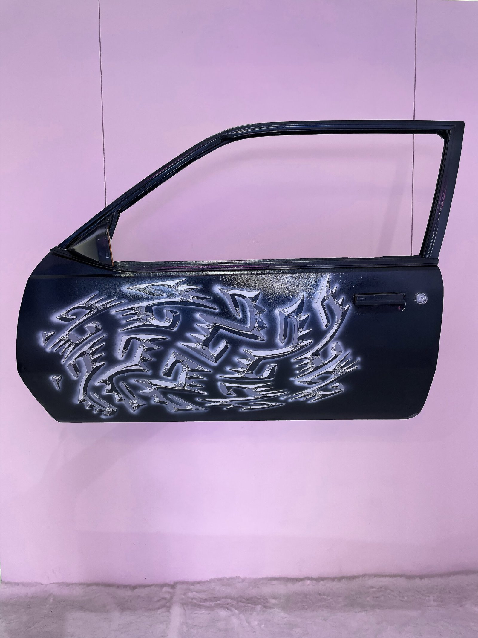 Un juego de autopartes detona la historia de Chicanoxtlán. Este espacio conjuga un relato ficcional, el cual recupera una larga historia de traslados migratorios entre Oaxaca y los Estados Unidos. A través de esta narrativa construye aquel lugar al que llegarían aquellas personas que viajan hacia el norte y nunca alcanzan su destino. Estos fragmentos industriales forman parte de una memoria local. Se tratan de fracciones de un Cavalier de la década de 1980 (una puerta y un cofre) que Medina recibió a manera de herencia afectiva por parte de su abuelo. Desde el contexto de las vanguardias ex-céntricas, el automóvil ha sido un motivo fundamental de exploración. No sólo los primeros manifiestos hablaron sobre él, al remarcar el cambio económico y geo-político impuesto por el fordismo, sino también formó parte de experimentaciones plásticas radicales que utilizaron el aerógrafo y lacas automotivas en la década de 1930. Por otro lado, la salida al espacio público (desde Olvera Street) tuvo este referente como su vehículo-subversivo.
