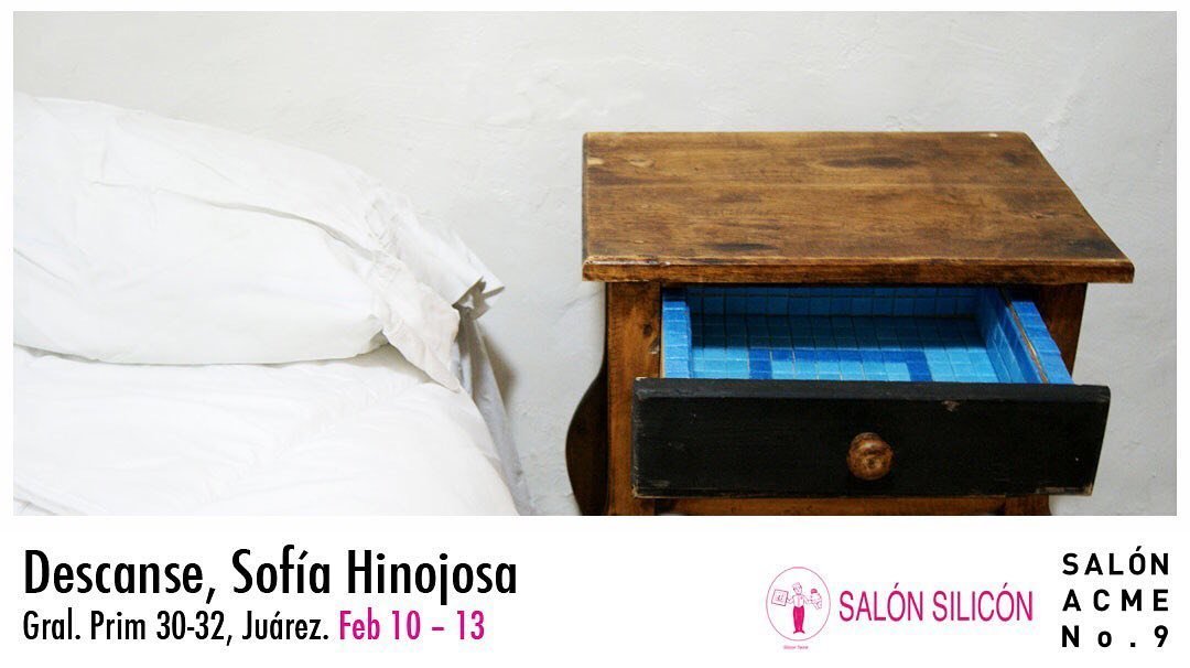 […] DESCANSE es el título de esta exposición de Sofía Hinojosa y el incómodo tono impositivo de esta comanda no es casualidad, pues retoma el ánimo dictatorial antes mencionado y enmarca pequeñas ficciones para el ejercicio y el uso del tiempo libre:. descansos de bolsillo que se detonan al brincar dentro del cajón, al esconderse en la mesa o entre los pliegues de plástico tamaño carta. Las piezas presentadas son, además, una promesa de escape y la posibilidad de sumergirse de manera voluntaria junto a la cama, o debajo del escritorio. Llama la atención el carácter espacial de las piezas presentadas, pues aún a pesar de sus dimensiones, su capacidad de ser contenedor invita a corporalizar la experiencia a partir de las cualidades formales de las mismas.