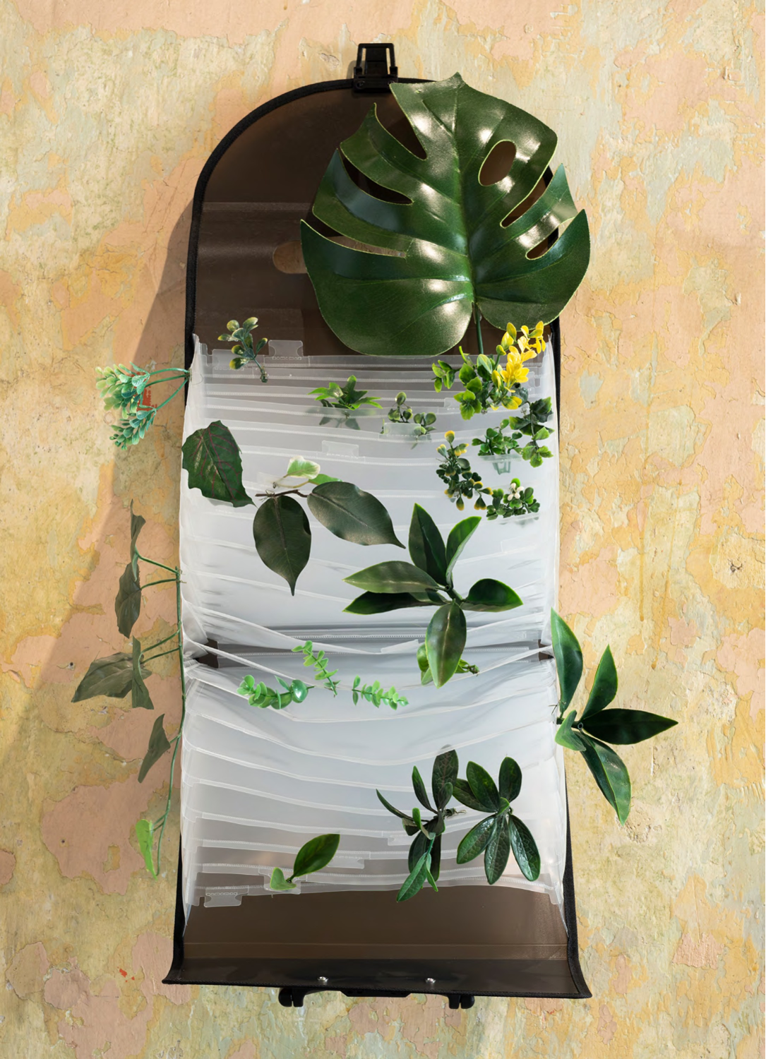 […] REST is the title of this exhibition by Sofía Hinojosa. The uncomfortable imposing tone of this command is no coincidence, taking up the previously mentioned dictatorial spirit, framing small fictions for the use and exercise of free time: pocket breaks that are triggered by jumping inside the drawer, hiding on the table or between the letter-size plastic folds. The pieces presented are also a promise of escape, and the possibility of voluntarily submerging next to our bed, or under our desk. The spatial character of the pieces presented is striking, because even despite their dimensions, their capacity to be a container invites us to embody the experience based on their formal qualities.