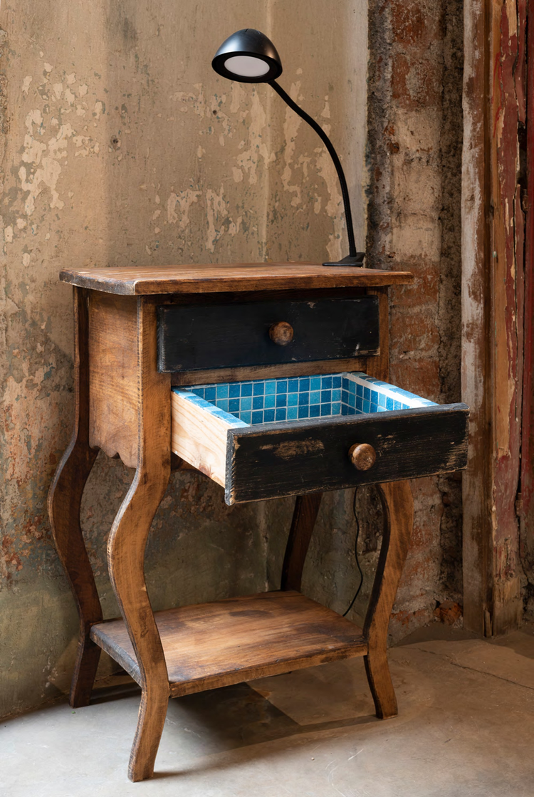 Descanso de cajón (Cajonera), 2022 Madera y mosaico veneciano. 72 x 46 x 32 cm