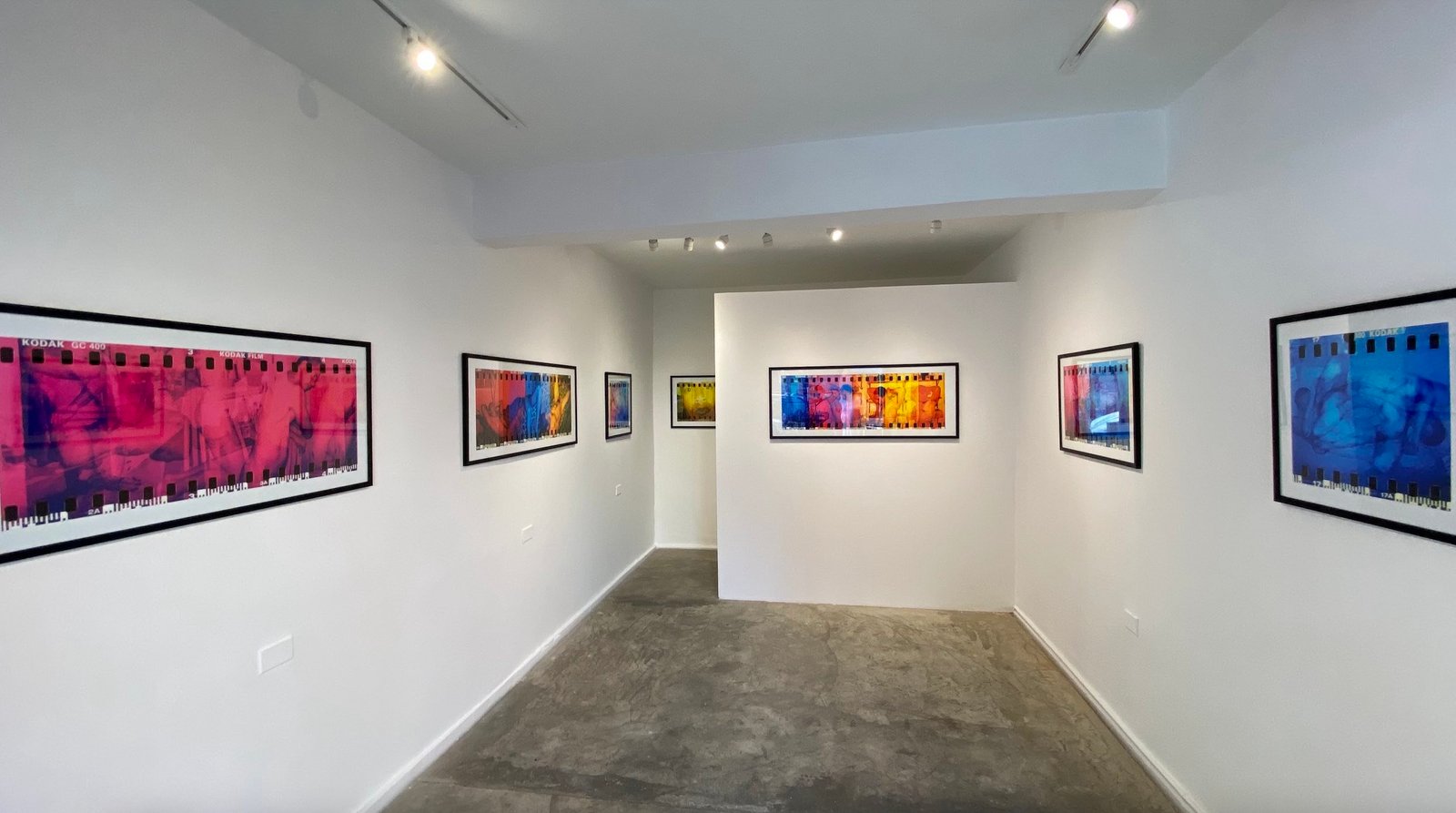 The exhibition consists of a series of frames from the same film in which Alan made multiple exposures, in a true experimental study of light and color. The result is an alchemy of images. As any good alchemist, Alan used experiments and tricks to discover new states of matter and light: a “chromatic horizon” where shapes, colors, bodies and shadows become indivisible. That is why we included the sprocket holes and information on the film, in order to show all the potential that Alan sensed in the image.