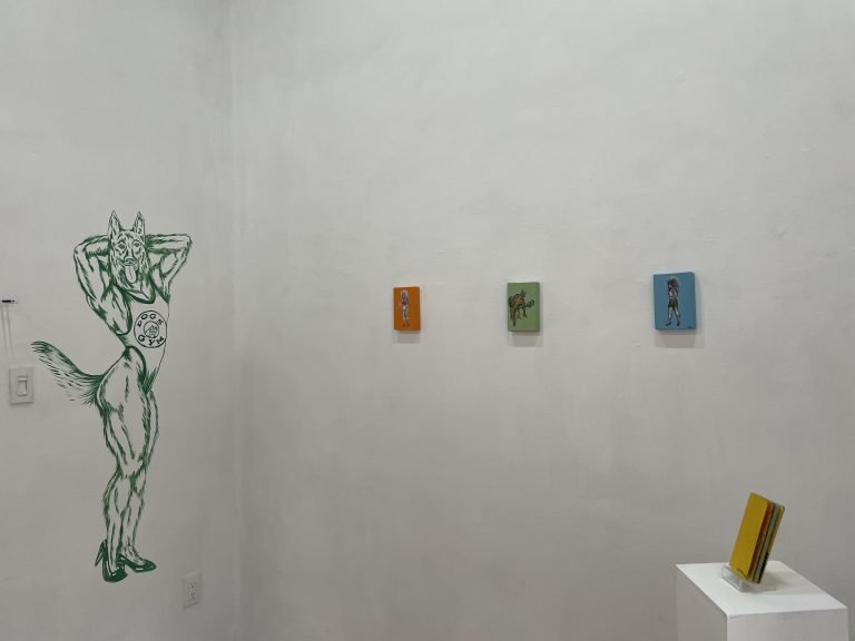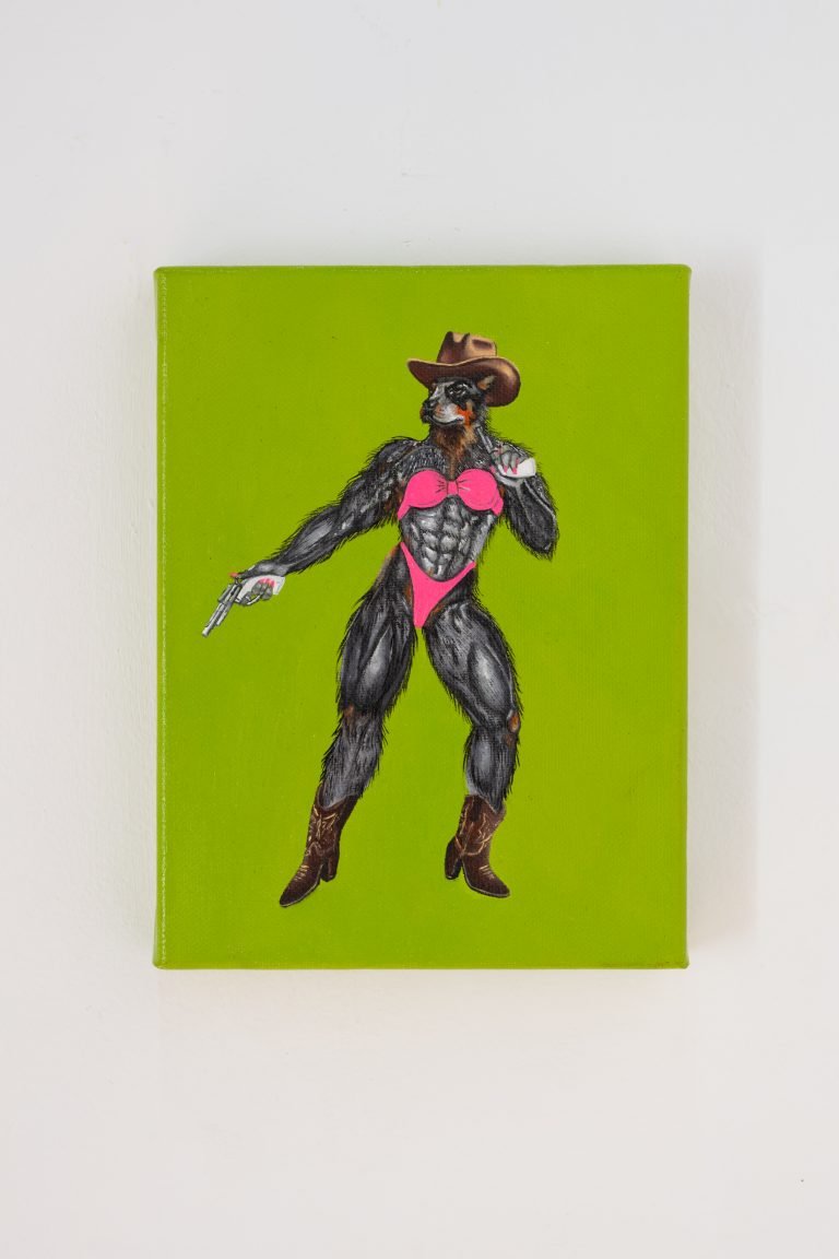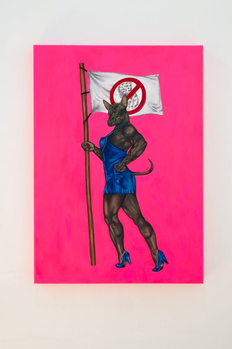 Inspirada en la gráfica popular, esta pasarela de cuerpos -digna de la federación de fisicoculturismo o de cualquier exposición cinológicaresulta en un ejercicio de zoo-antropología pop que disecciona la autoexplotación del insulto y el empoderamiento al ser nombrada PERRA. Dicha utopía peluda reúne en el templo del físico a: La Chorgi, La Impostora Alemán, la Rot Boiler y la Salchipapa, entre otras criaturas entaconadas, predadores del clan de las gatichinas, concebidas no para la caza o el pastoreo, sino para la dominación erótica o poncharse en las barras del parque más cercano. Al igual que nosotras, no luchan por un ideal, sino por algo más visceral: la validación en un mundo que nos pide ser Lassie y Schwarzenegger al mismo tiempo.