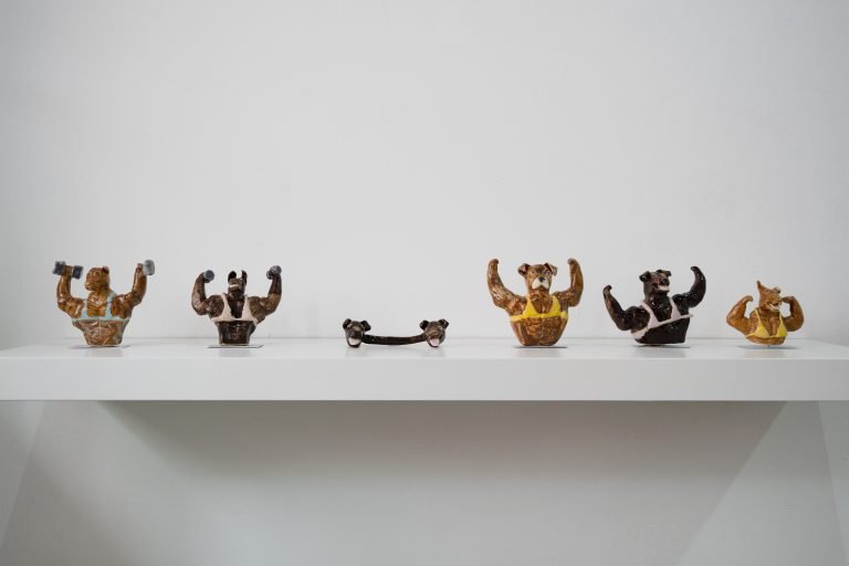 Las divas caninas no se conforman con ser “buenas muchachas”; esculpen sus cuádriceps con devoción. Sus cuerpos humanizados, coronados por orejas puntiagudas y hocicos sudorosos, capturados en trazo, pincelada, cerámica y hasta impresión 3D, son el campo de batalla final de las que ladramos y no buscamos nuestro premio en seguir royendo el mismo hueso viejo, ni en la aprobación de un jurado de machos alfa quiénes, irónicamente, hoy llevan puesta la correa al cuello.