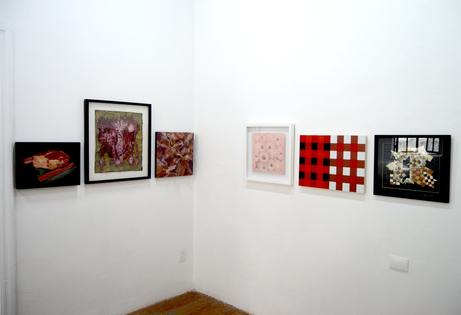 Claramente inspirado en las tramas ortogonales desde donde nace el arte geométrico, Thompson transforma la rigidez racionalista de la geometría en unas formas orgánicas, como protuberancias o bultos que invalidan, desde su condicion corporal y táctil, toda la pulida asepsia de la tradicion abstracto-geométrica. La materialidad bulbosa de sus relieves escultóricos y las obsesivas, intensas, repeticiones pictóricas que las recubren, le otorgan a estas obras un lugar completamente inédito en la tradición del arte geométrico. En cierto modo, sus obras encarnan -nunca mejor dicho- una geometria carnal y carnosa: faceta verdaderamente extravangante -excéntrica, decíamos antes- asociada al inmaculado lenguaje de la abstracción.