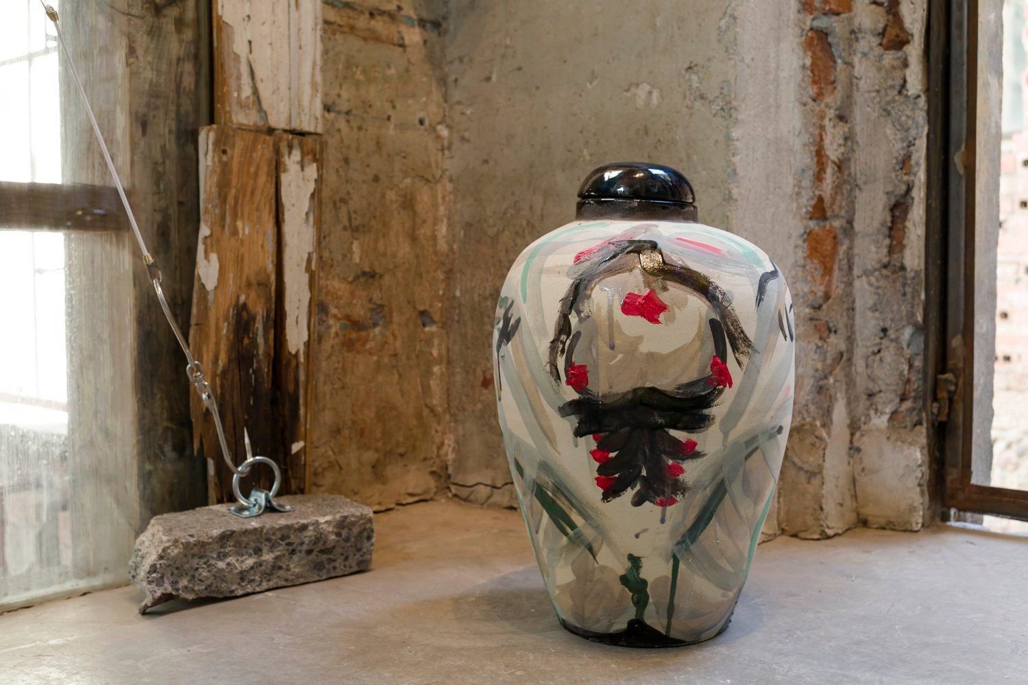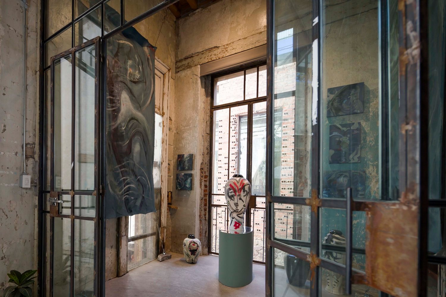 El impulso que jala hacia una cacofonía de imágenes y el dejo de figuras deconstruidas que emergen de rajaduras decisivas y esqueléticas en planos psicodélicos. Las marcas y los movimientos se extienden en una red de signos primordiales, influidos por peculiares estados de ánimo, permitiendo que la dicha y la furia se derramen en color, textura y línea, eclipsando lo cerebral. Sólo el cuerpo, sólo el gesto: un único canal para un trasfondo infinito.