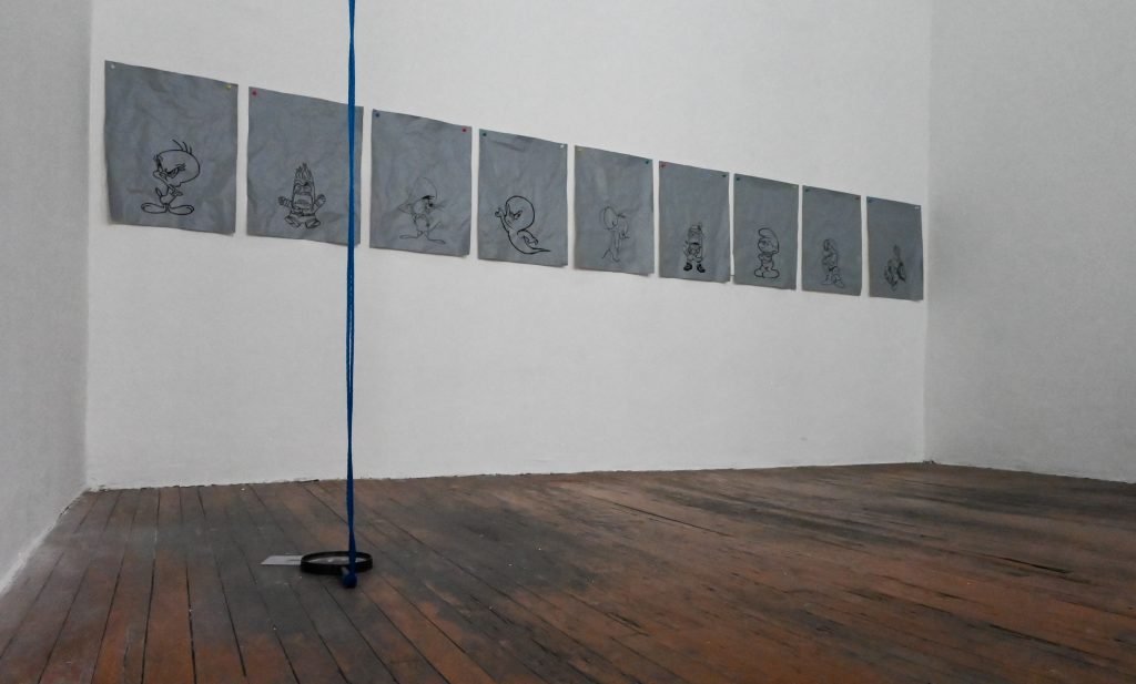 pinturas deshuesadas que rozan lo grotesco sin que tiemble lo ridículo, carcajadas y palabras a medio decir, colores que tiemblan, geometrías al reverso, arquetipos burdos, coreografías incómodas.